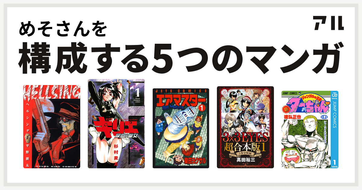 めそさんを構成するマンガはhellsing キリエ 吸血聖女 エアマスター 3x3eyes 新ジャングルの王者ターちゃん 私を構成する5つのマンガ アル